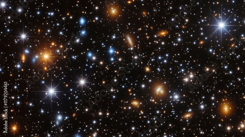 © Валерий Тодаренко, Fototapeta premium dense star field with golden and white lights twinkling against a black backdrop
