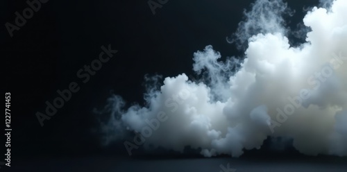 Fototapeta premium Dense white smoke billowing dramatically across black , texture, dramatic, smoke