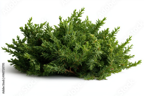 © Thanapong, Fototapeta premium Dense yew bush with dark green needlelike leaves isolated on white background nature photography studio environment close-up viewpoint vibrant concept