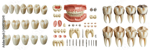 © Phatcharee, Obraz premium Dental anatomy and tools for educational purposes on a transparent background