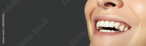 Fototapeta premium Dental Beauty. Beautiful Macro with perfect White Teeth. Fashion Lips natural...