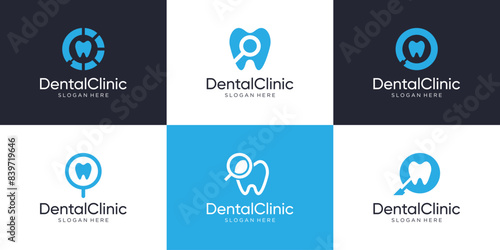 © kiarev, Naklejka premium Dental care and find symbol logo design collection.