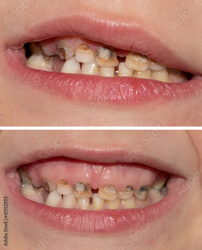 © schankz, Naklejka premium Dental medicine and healthcare - human patient open mouth showin