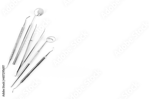 Fototapeta premium Dental metal equipment tools for teethcare and dental health