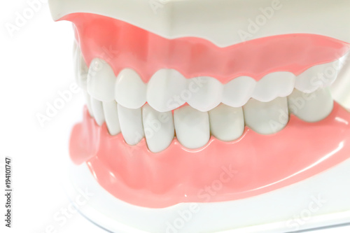 © Benchamat, Obraz premium Dental Model of Teeth and broken tooth Isolated on white background clipping path