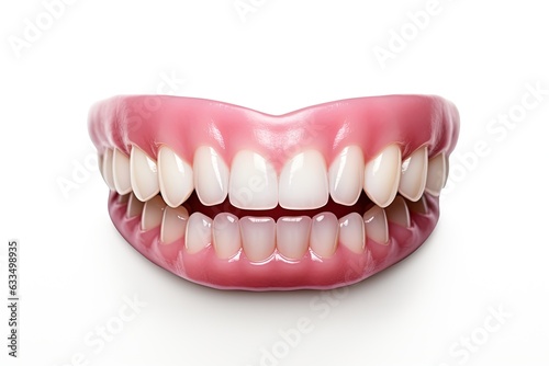 © Bargais, Obraz premium Dental prosthesis on a white background. Generative AI.