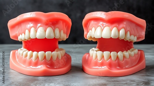 © Biggy, Obraz premium Dental prosthetic models displayed for patient education against a dark backdrop, possibly for marketing