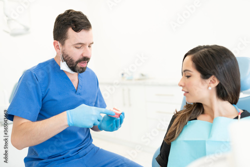 Obraz premium Dentist Explaining Patient At Clinic