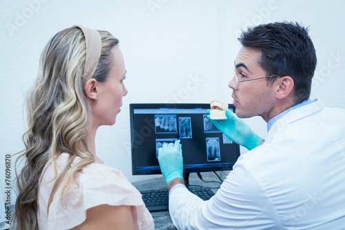 © WavebreakmediaMicro, Fototapeta premium Dentist showing woman prosthesis teeth