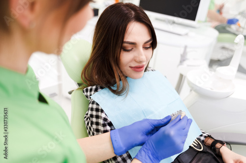 © Andrii , Fototapeta premium Dentist shows patient a model of teeth