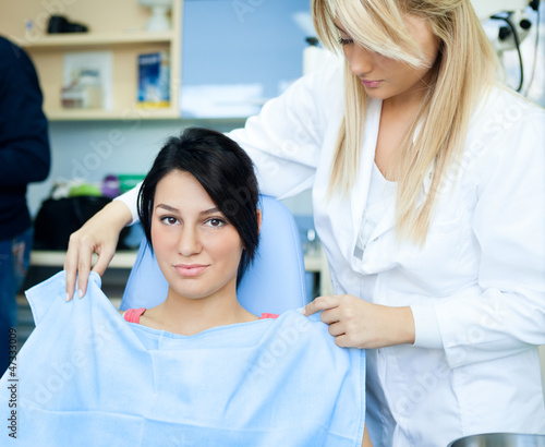 Fototapeta premium Dentists assistant and female patient