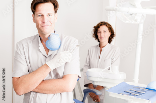 © SteelStock, Fototapeta premium Dentists portrait in uniform standing in dentist office looking at camera