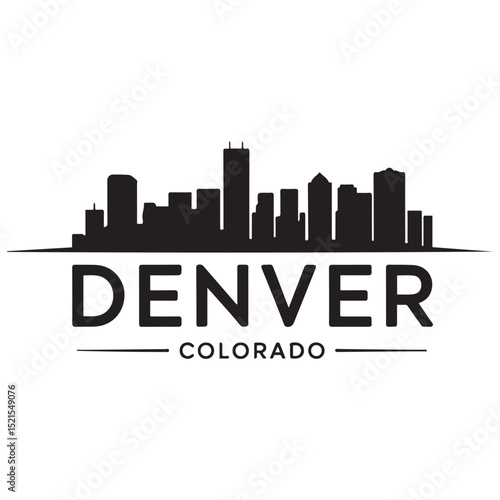 © firoz, Obraz premium Denver skyline horizontal banner. Denver, Colorado. Vector template for your design. Vector black silhouette. with white background