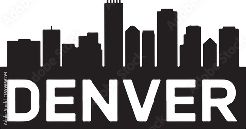 © Team RAS, Fototapeta premium Denver Skyline Silhouette | Black Vector Cityscape on White Background