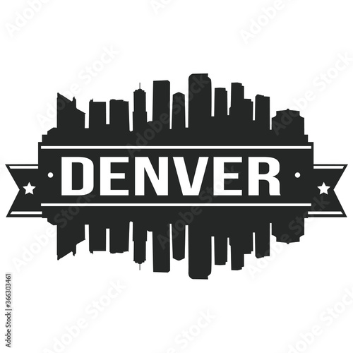 Fototapeta premium Denver Skyline Stamp Silhouette. Reflection Landscape City Design. Vector Cityscape Icon.