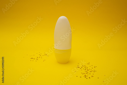 © Tetiana Romaniuk, Fototapeta premium Deodorant stands on a yellow background