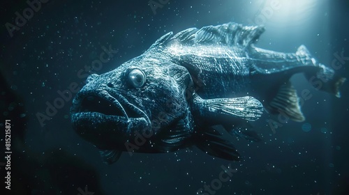 Fototapeta premium Depict a coelacanth caught in the beam of a submarines light, emphasizing its...