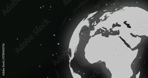 Obraz premium Depicting stylized globe occupying right side of frame, showing halftone...