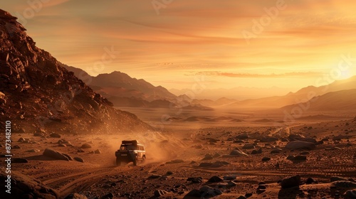 © Chingiz, Naklejka premium Depiction of extreme adventures or a science expedition in a stone desert.