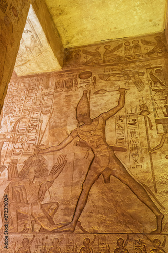 Obraz premium Depiction of Ramesses II killing an enemy at the battle of Kadesh in the Great Temple of Abu Simbel