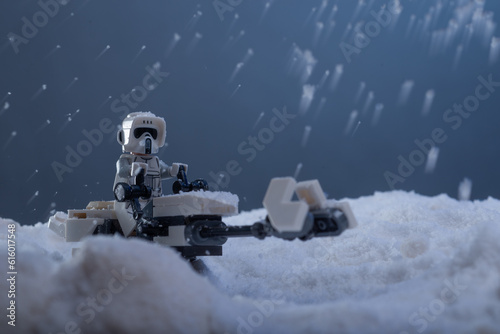 © Ralfa Padantya, Fototapeta premium Depok, Indonesia - November 8, 2022: Lego toys photography recreating Star Wars Battle of Hoth Scene of imperial troopers