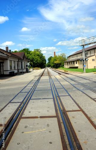 © bonniemarie, Fototapeta premium Depot besides tracks