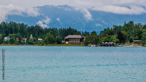 Fototapeta premium Der Faaker See in Österreich mit Blick auf die Gerlitzen