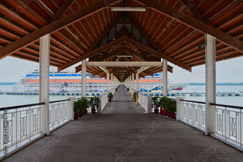 Fototapeta premium Der lange Gang zum Schiff in Port Klang, Malaysia - The long corridor to the ship in Port Klang, Malaysia