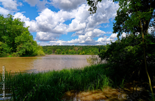 Fototapeta premium Der Reutsee bei Sulzdorf an der Lederhecke, Landkreis Rhön-Grabfeld, Unterfranken, Bayern, Deutschland