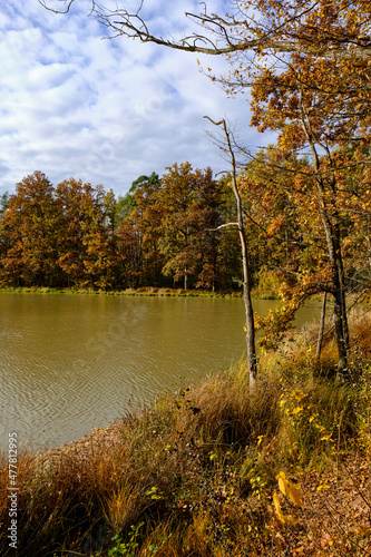 © dina, Fototapeta premium Der Reutsee bei Sulzdorf an der Lederhecke, Landkreis Rhön-Grabfeld, Unterfranken, Bayern, Deutschland