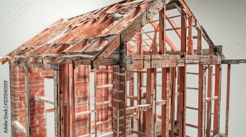Obraz premium Derelict House Frame: A close-up shot reveals the skeletal remains of a...