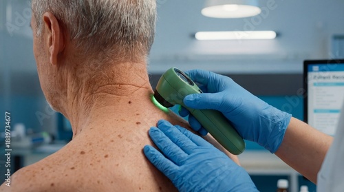 © Starmarpro, Obraz premium Dermatologist Examining Skin with Dermatoscope