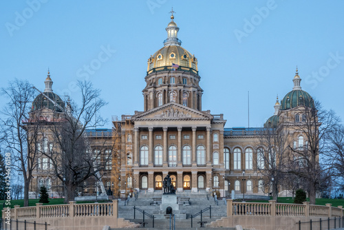 © digidreamgrafix, Obraz premium Des Moines Iowa skyline in USA at night