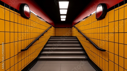 Obraz premium Descending into Amber: Subway Stairwell Architecture