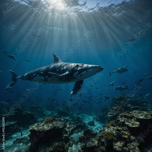 © Ahmad, Fototapeta premium Describe an underwater kingdom led by whales.