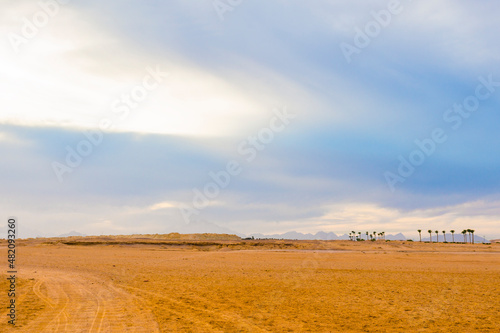 Fototapeta premium desert and clouds in egypt, sahl hasheesh in the evening