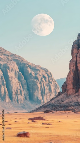 © Pisang, Fototapeta premium Desert Canyon Moonlit Landscape.