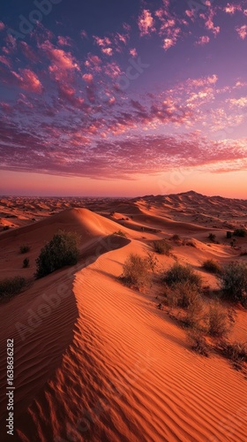 Naklejka premium Desert dunes at vibrant sunset