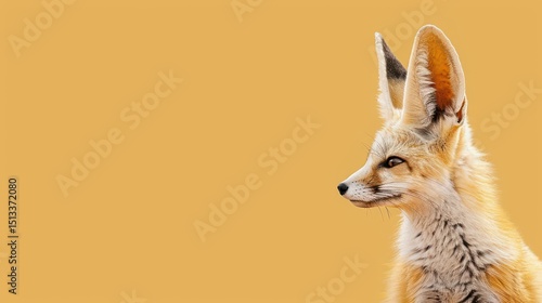 © Attala Rizky, Fototapeta premium Desert Fox Profile with Intense Gaze and Soft Fur Texture on Warm Yellow Background, Wildlife Animal Portrait with Copy Space, Nature Photography