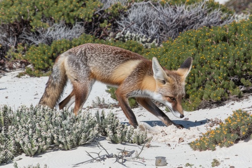 © Trionorejo, Fototapeta premium Desert fox searching for food on sandy beach