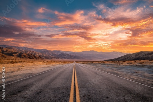 © Firmantio, Fototapeta premium Desert highway at vibrant sunset