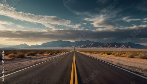 © Vectorizee, Naklejka premium Desert Highway mountains Death Valley Road autumn evening