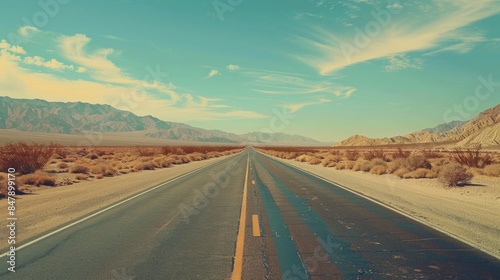 © Olena, Naklejka premium Desert Highway. Retro Vintage USA Travel Adventure on Scenic Road