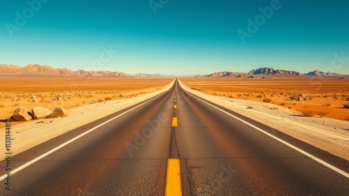 © Adisorn, Fototapeta premium Desert Highway USA - Sunlit Straight Road - AI Photo
