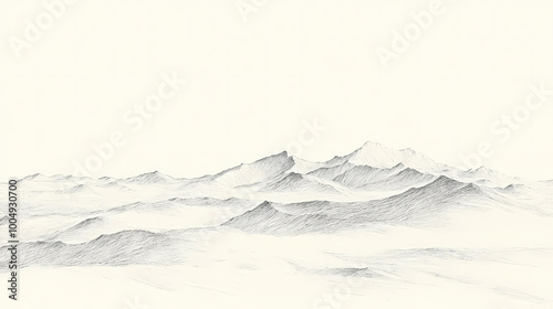 © Thiago, Obraz premium Desert landscape nature minimalist serenity simplicity tranquility lines ink drawing artwork monochrome beauty. Ink Drawing. Illustration