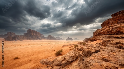 © setiadio, Naklejka premium Desert landscape under dramatic sky