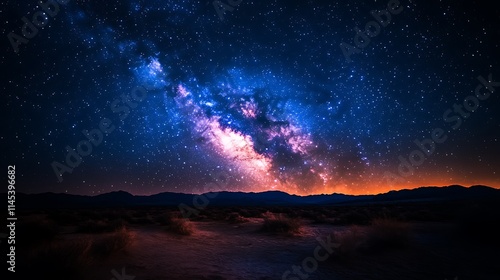 Fototapeta premium Desert Landscape Underneath a Vibrant Milky Way Galaxy