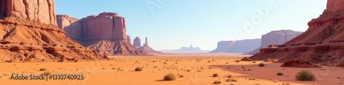 Naklejka premium Desert landscape with towering sandstone formations and empty vastness, rock...