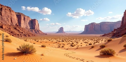 © Temteen, Naklejka premium Desert landscape with warm beige sandstone formations, sandstone, geological