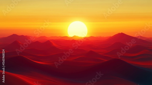 Fototapeta premium Desert Landscapes at Sunset A golden desert with soft dunes, the sun setting in the background